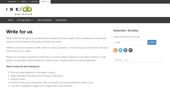 This site is looking for contributors who are experts on creating websites, social media, making money online or driving traffic. Pay rate is not disclosed. Submit idea in online form for consideration.